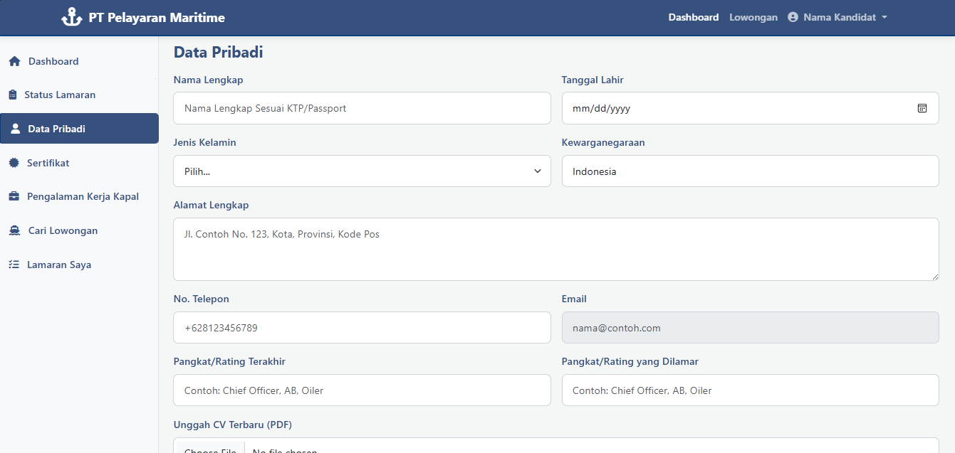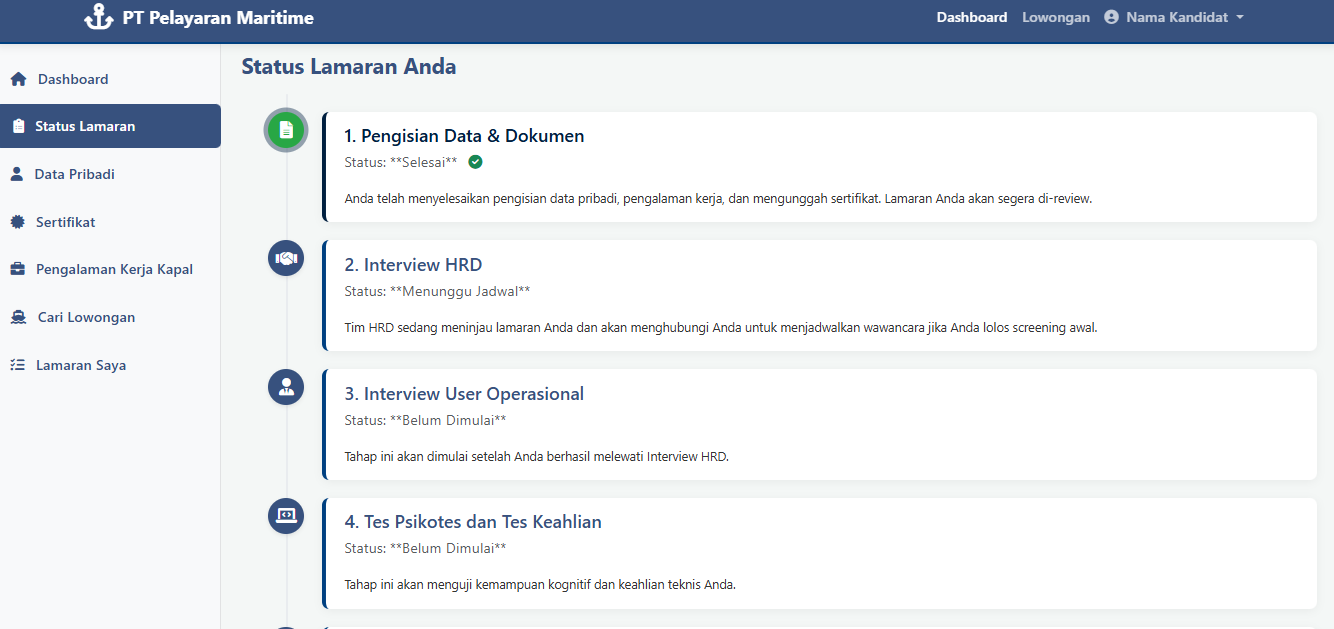 Sistem E-Recruitment Crew - PT Pelayaran Maritime